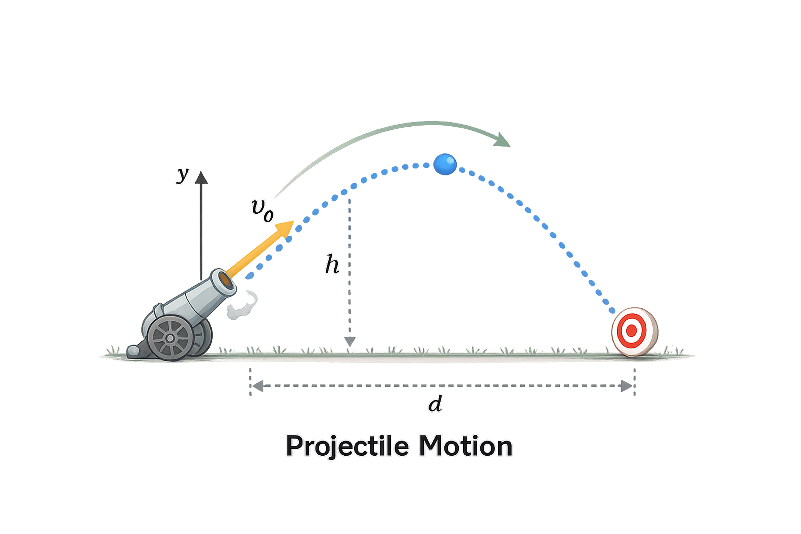 जब किसी object को एक angle पर launch किया जाता है, तो gravity की वजह से वह parabolic path follow करता है।